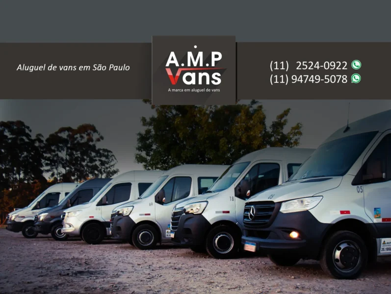 Escolha a AMP Vans para levar você a eventos e viagens. A Amp Vans é uma empresa competente no ramo do transporte coletivo uma vez que, oferece motoristas capacitados com CNH profissional e curso de transporte coletivo. Se você precisa alugar uma van para eventos, exposições, feiras, museus ou teatros em São Paulo então, a Amp Vans é a escolha certa. Além do mais, Se você possui uma equipe de produção de foto e filmagem para cobrir eventos, a Amp Vans atenderá eficientemente o transporte de passageiros e equipamentos em São Paulo e regiões.Você precisa alugar uma van com motorista? Então fale com a nossa equipe. Atendimento: Segunda à Sexta das 09:00h as 18:00h.